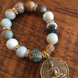 Faceted Amazonite & Buddha/Yin-yang Pendant