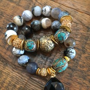 Faceted Agate with Turquoise Tibetan Beads & Onyx Vermeil Pendant